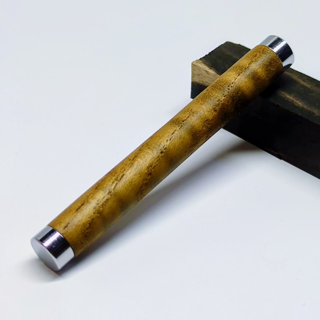 【適合について】 本製品は「ステッドラー925シリーズ」に対応する木軸パーツのみの販売です。 ※ステッドラー製の純正品ではありません。 ※ペン本体は付属しません。写真は装着イメージです。 シルバーのクリップを装着した状態でお届けします(当店にて用意した部品です)。 ※純正クリップは付属しません。 ※メンテナンス用オイルと、木種おまかせでウッドキューブが付属します。 【寸法】 ● 木軸パーツのみ 長さ:111mm 太さ:11mm ● ステッドラー925装着時(参考)長さ:約144mm 太さ:11mm 重さ:約21.1g ※細軸(8.8mm)と長さは同じです。 【11mmという設計】 太いのではなく、支える設計。 11mm径は指先に余計な力をかけず、自然な筆記姿勢へ導きます。 長時間の筆記でも安定感が持続する寸法設計です。 芯の繰り出し量は、ステッドラー純正と同じ設計。 操作感を損なうことなく、安心してお使いいただけます。 【欅瘤とは】 欅瘤(けやきこぶ)は、日本を代表する銘木・欅にごく稀に現れる瘤部分です。 成長の過程で繊維が複雑に絡み合い、通常の欅には見られない立体的で緻密な杢を生み出します。 力強さの中に繊細さを併せ持ち、光の当たり方によって表情を変える奥行きある木目。 硬質で耐久性にも優れながら、どこか温かみを感じさせる、日本の木ならではの品格を備えた希少材です。 【職人の手仕事と設計】 構想から完成まで約3年。 金具職人と共に設計を突き詰め、コンマ1mm単位で調整を重ねた特注パーツを採用しています。 今回より仕上げはオイルから蜜蝋へ変更。 木の質感を損なうことなく、しっとりと落ち着いた手触りに仕上げました。 適度な摩擦が生まれることで、軽く持つだけでも安定した筆記を支えます。 【こんな方におすすめ】 ・筆圧がやや強めの方 ・長時間の筆記をされる方 ・安定感を重視する方 ・欅瘤の豊かな杢を日常で楽しみたい方 【発送について】 お祝いの贈り物など、早めのお届けをご希望の方もいらっしゃるため、準備が整い次第できるだけ早く発送いたします。 ※日曜・祝日は郵便局休業日のため、発送はお休みとなります。 ・日本郵政「クリックポスト」(送料185円) 日時指定はできません。 日時指定をご希望の場合は「ゆうパック」(全国一律1,700円)をご利用ください。 【ご購入前のご案内】 複数商品をご購入の場合はまとめてご購入ください。 分けて購入されますと、その回数分の送料がかかってしまいますのでご注意ください。 【アフターサービスについて】 皆様に安心してお求め頂くために、私どもではきちんと「商品の保証」をしております。 到着後1か月以内の初期不良につきましては、無償にて修理対応いたします。 詳しくはパソコンの方は右上の「アフターサービス」からご確認ください。(Pay IDの方は「ショップ情報」をご覧ください。) 【ご連絡について】 「ご注文確定」「発送通知」「Tree×Lifeからの緊急のご相談」などは全てメールにてご連絡しております。 お取引終了までは時々メールをご確認くださいますようお願い申し上げます。 木と共に生きる「Tree×Life」