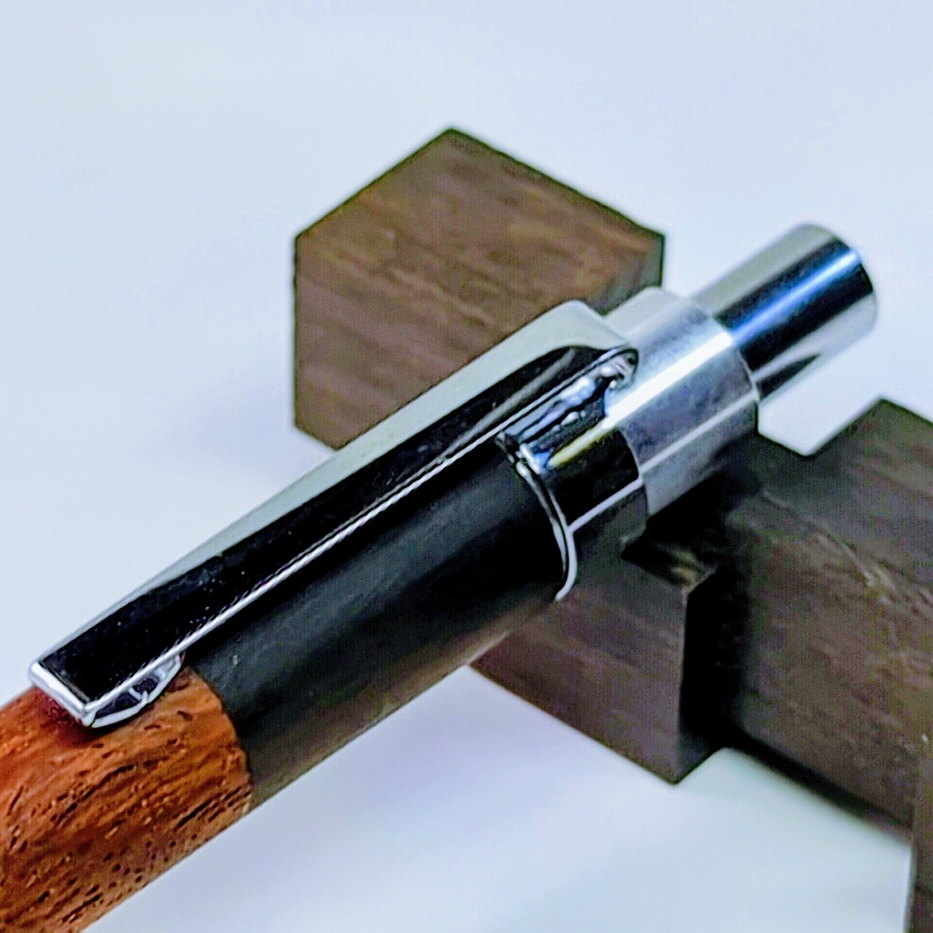 同時に出品しているシャーペンも同じ大きな塊から切り出して製作しましたので、木目、色合いが同じで、机の上の統一感が抜群です。