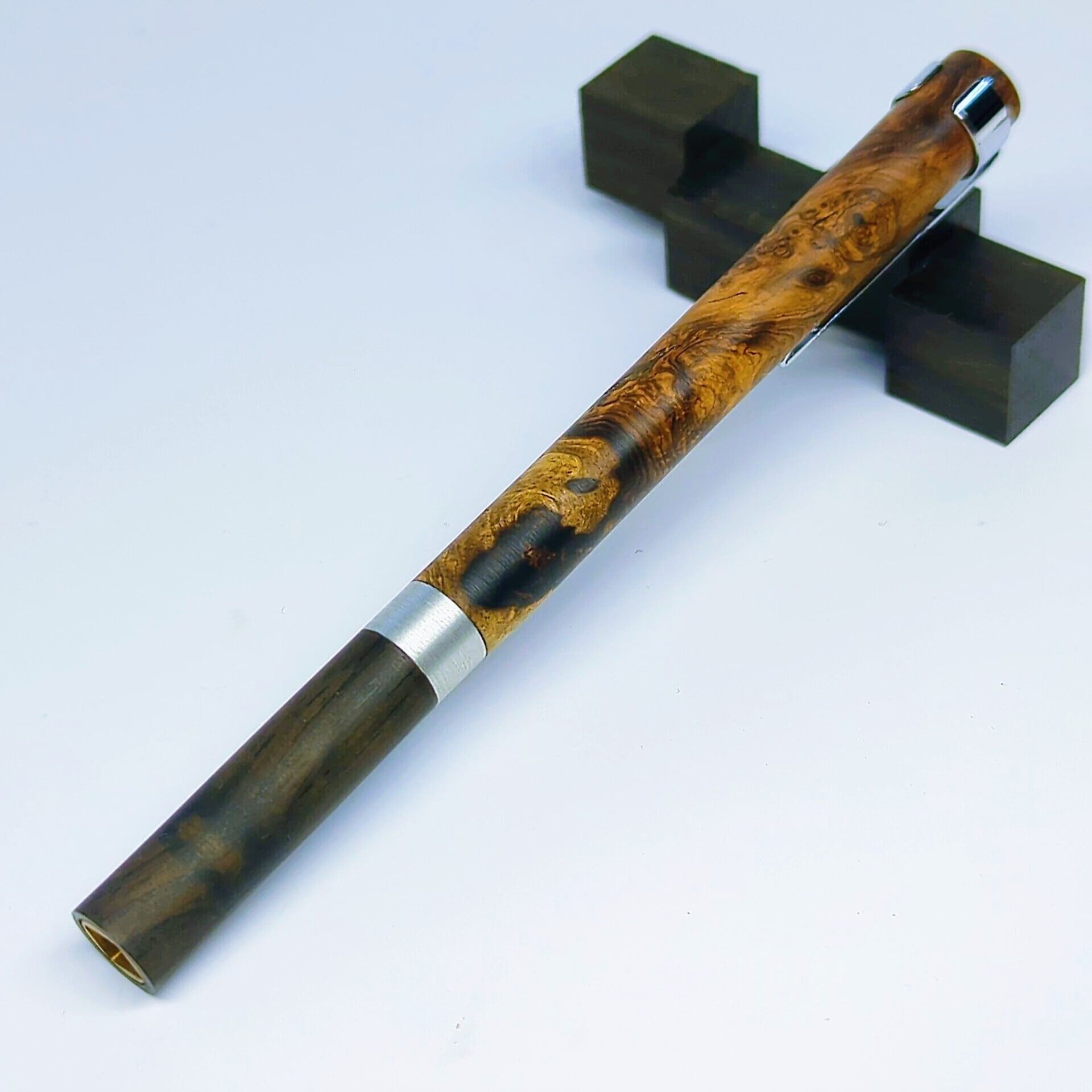 本品は「上部:ローズウッド特上」「下部:本黒檀」の天然木仕様。滑らかな手触りと適度な重みが、日々の筆記に上質な余韻を添えます。