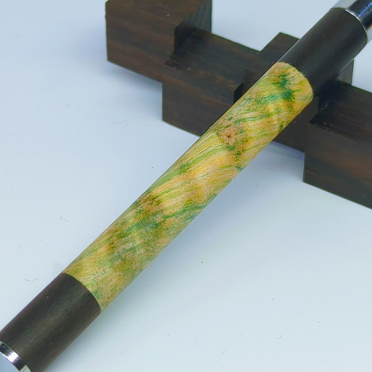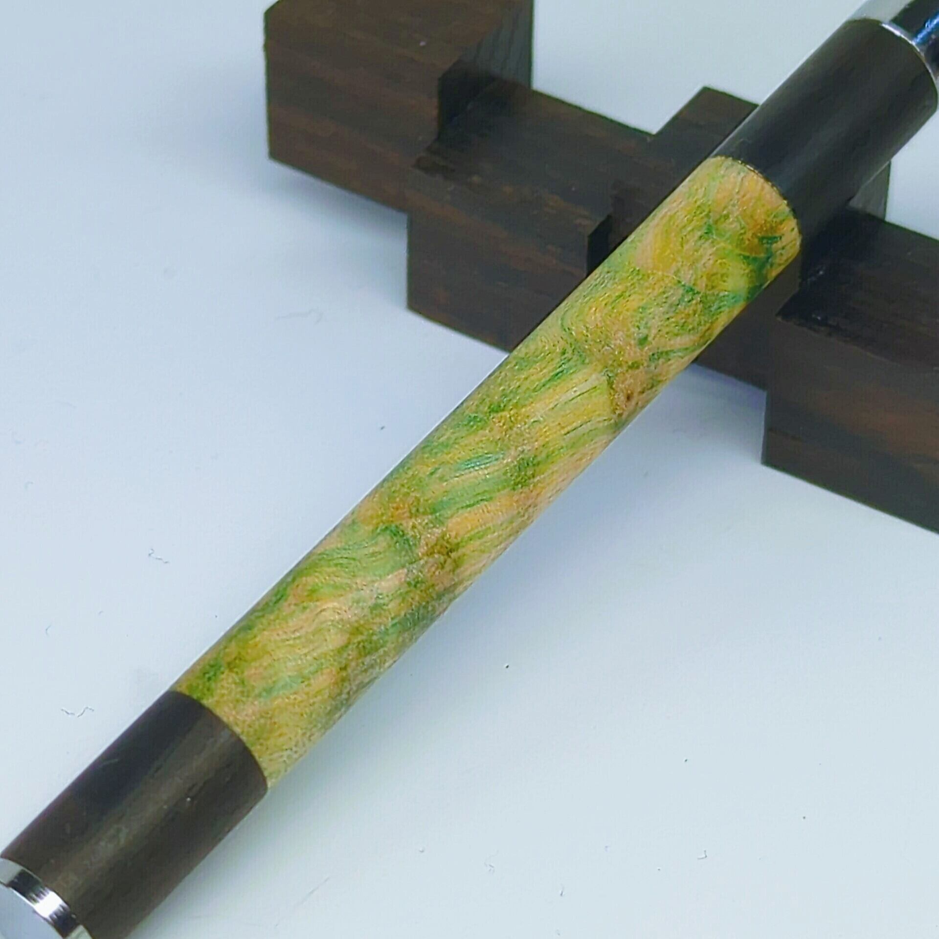 フレッシュグリーンの美しい色に縮杢が美しい1本でございます。