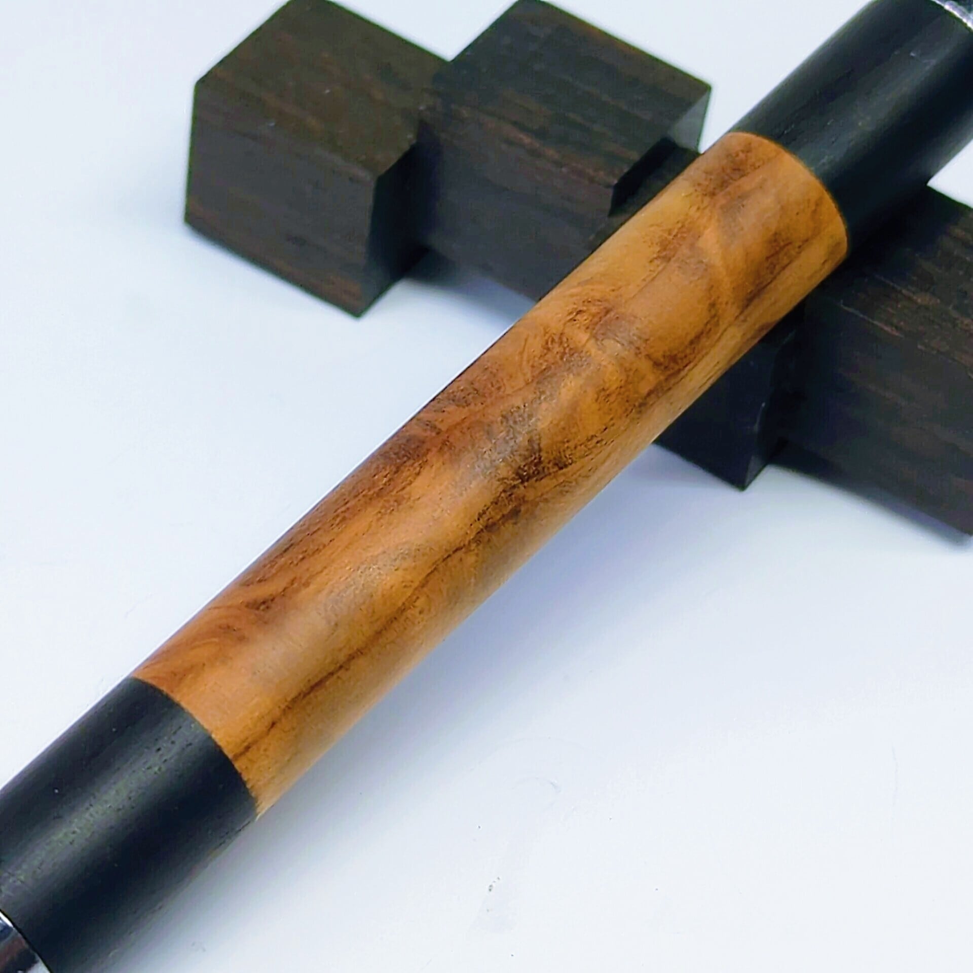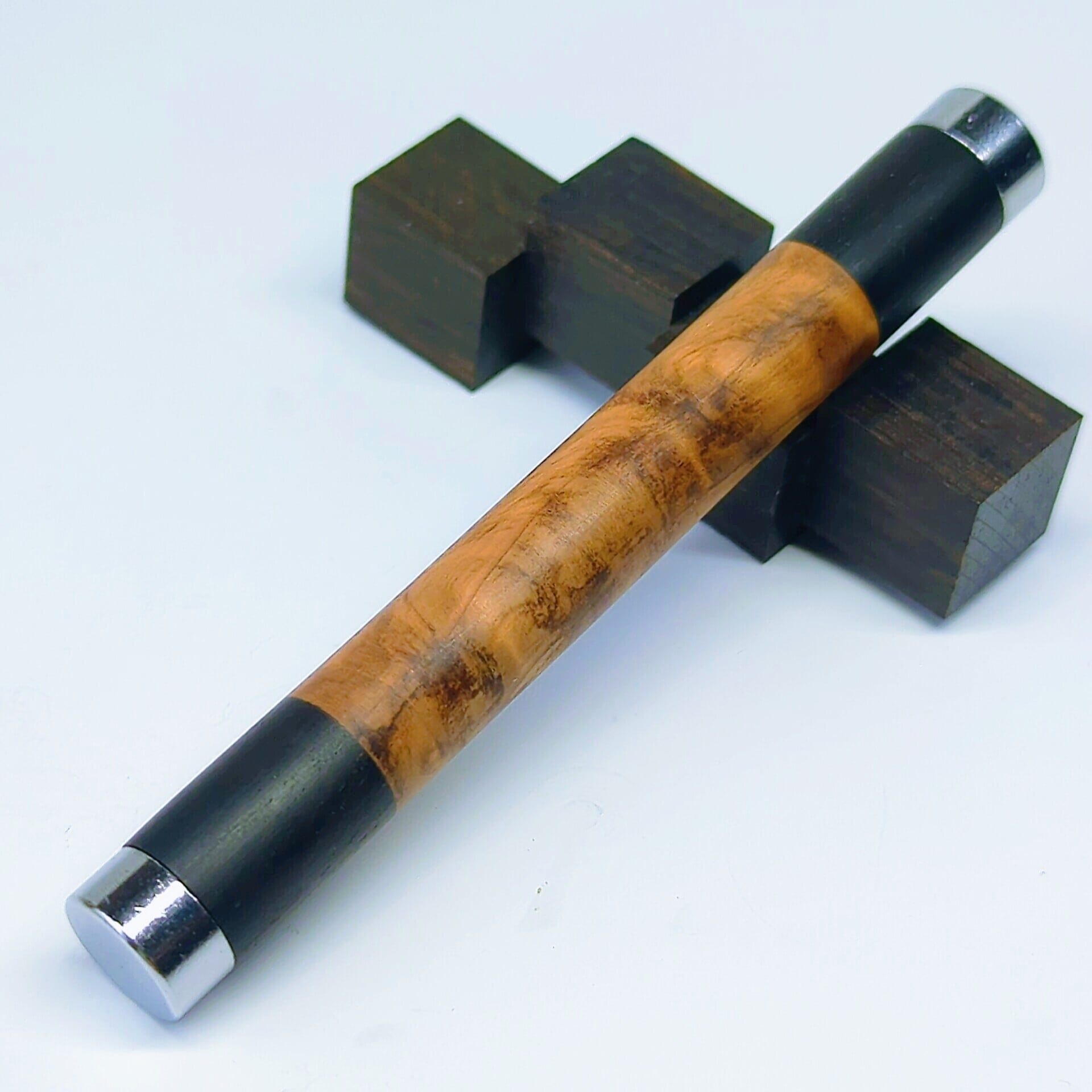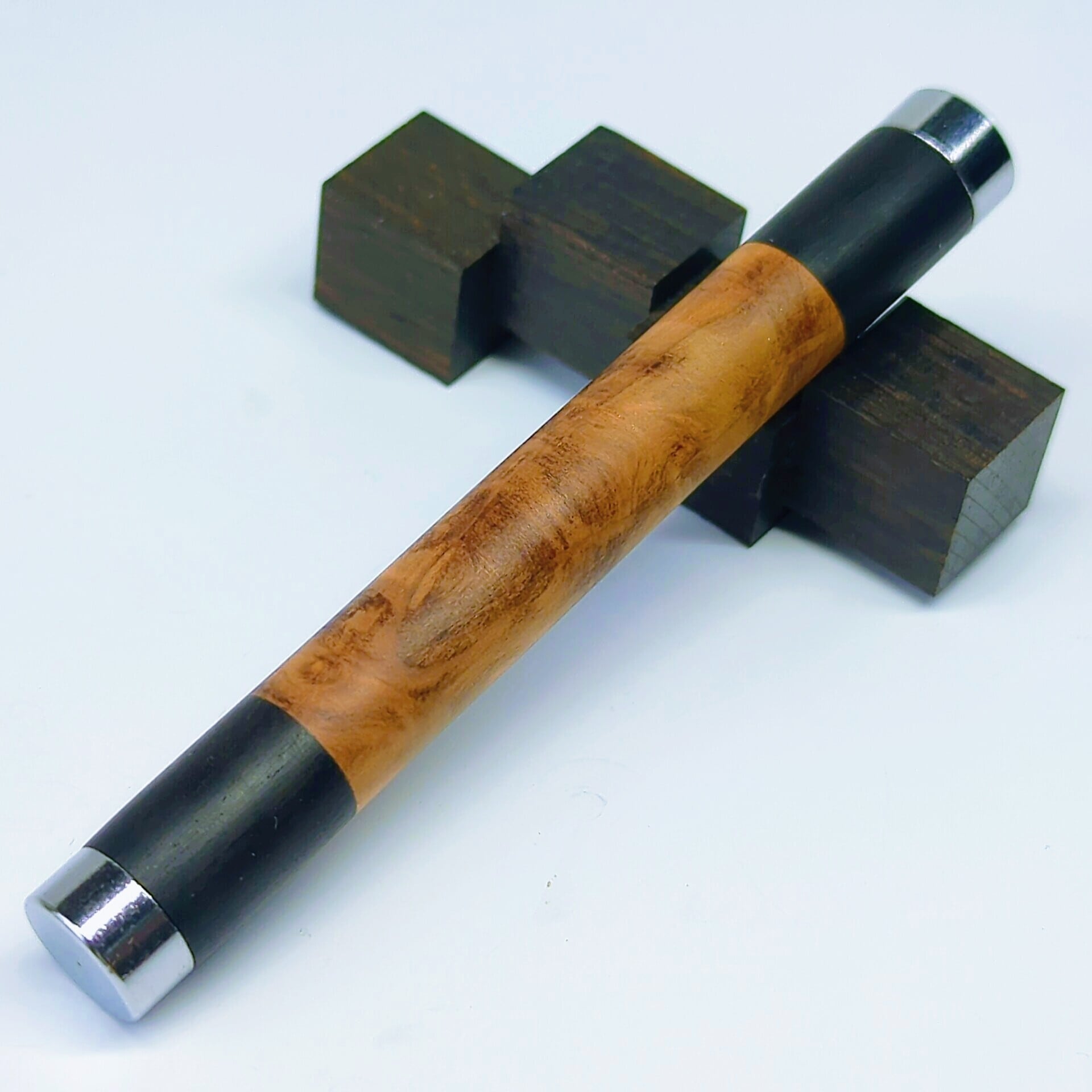 小さなアイテムながら中心には金属パイプを通し、両サイドには黒檀を配した二層構造。