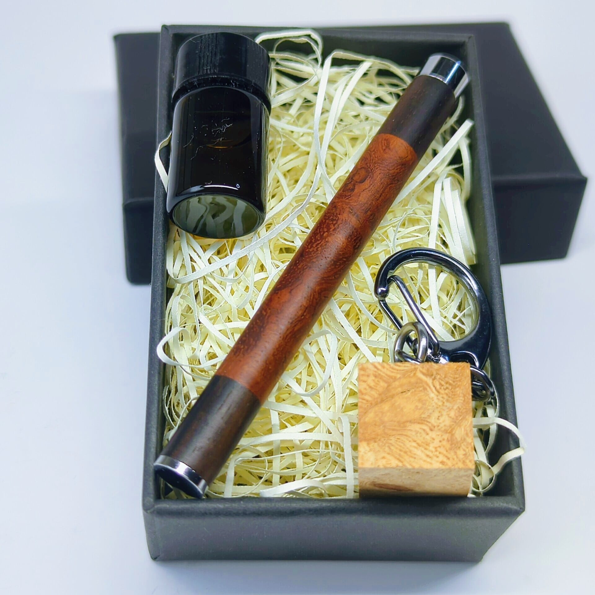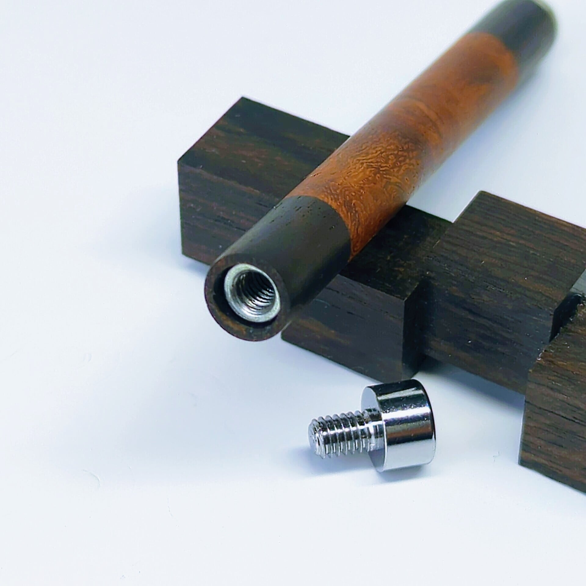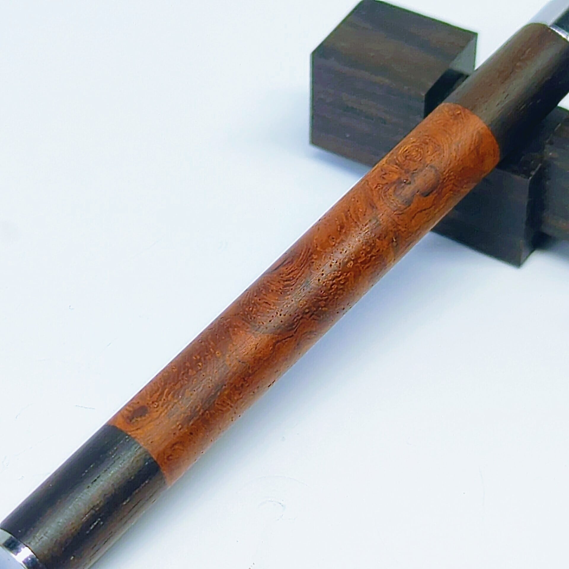 小さなアイテムながら中心には金属パイプを通し、両サイドには黒檀を配した二層構造。