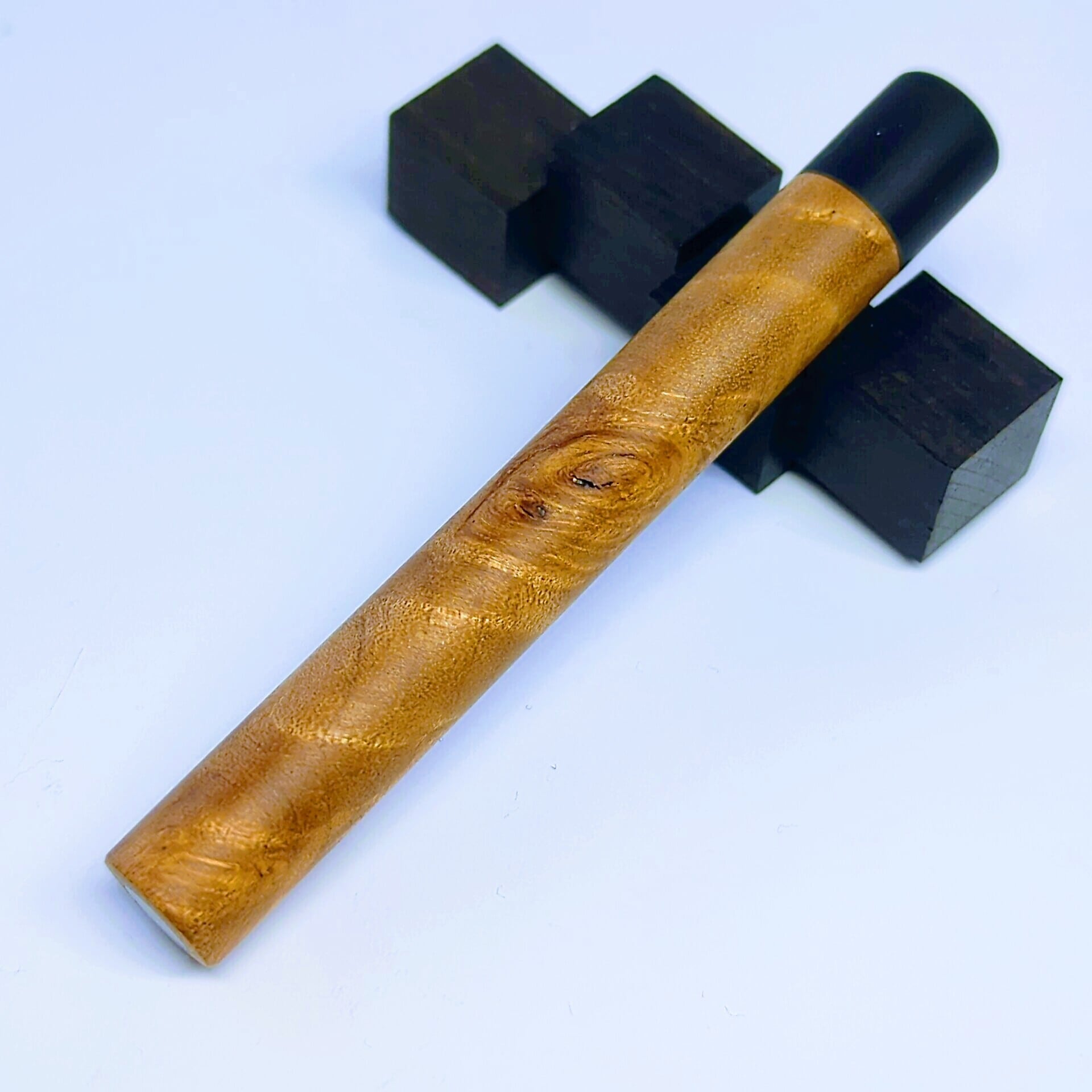 マーブルウッドは「黄金楠」とも呼ばれる希少な木材です。特に瘤や縮杢と呼ばれるうねるような木目は美しく、市場に多く出回るものではありません。大理石のように複雑で力強い模様は一本ごとに異なり、まるで宝石のような存在感を放ちます。持つだけで特別感を味わえる、魅力的な素材です