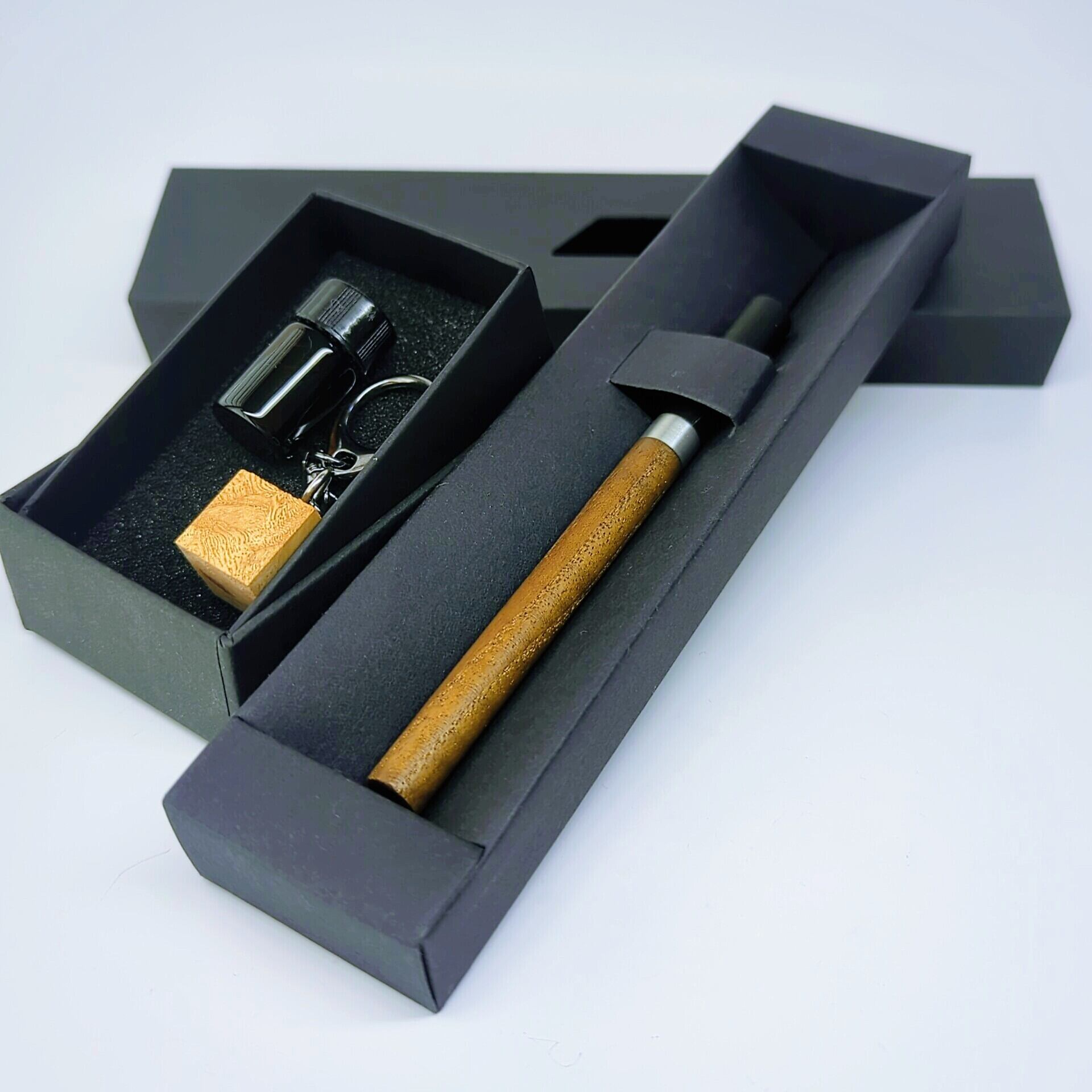 本品は「上部:キハダ」「下部:本黒檀」の天然木仕様。