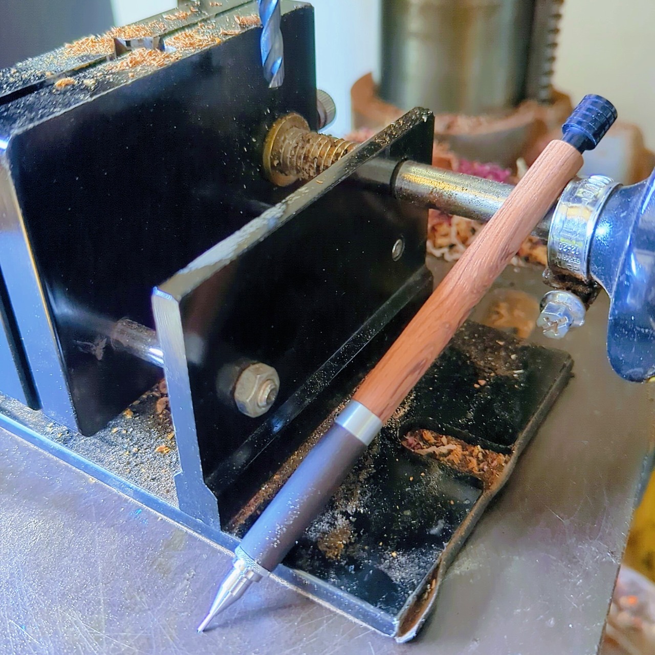 Tree×Lifeの木軸は工房で一本ずつ加工・調整しています。販売ページ内には製作工程の写真を掲載していますが、写真内のペンは撮影用サンプルのため、本商品とは木材が異なります。