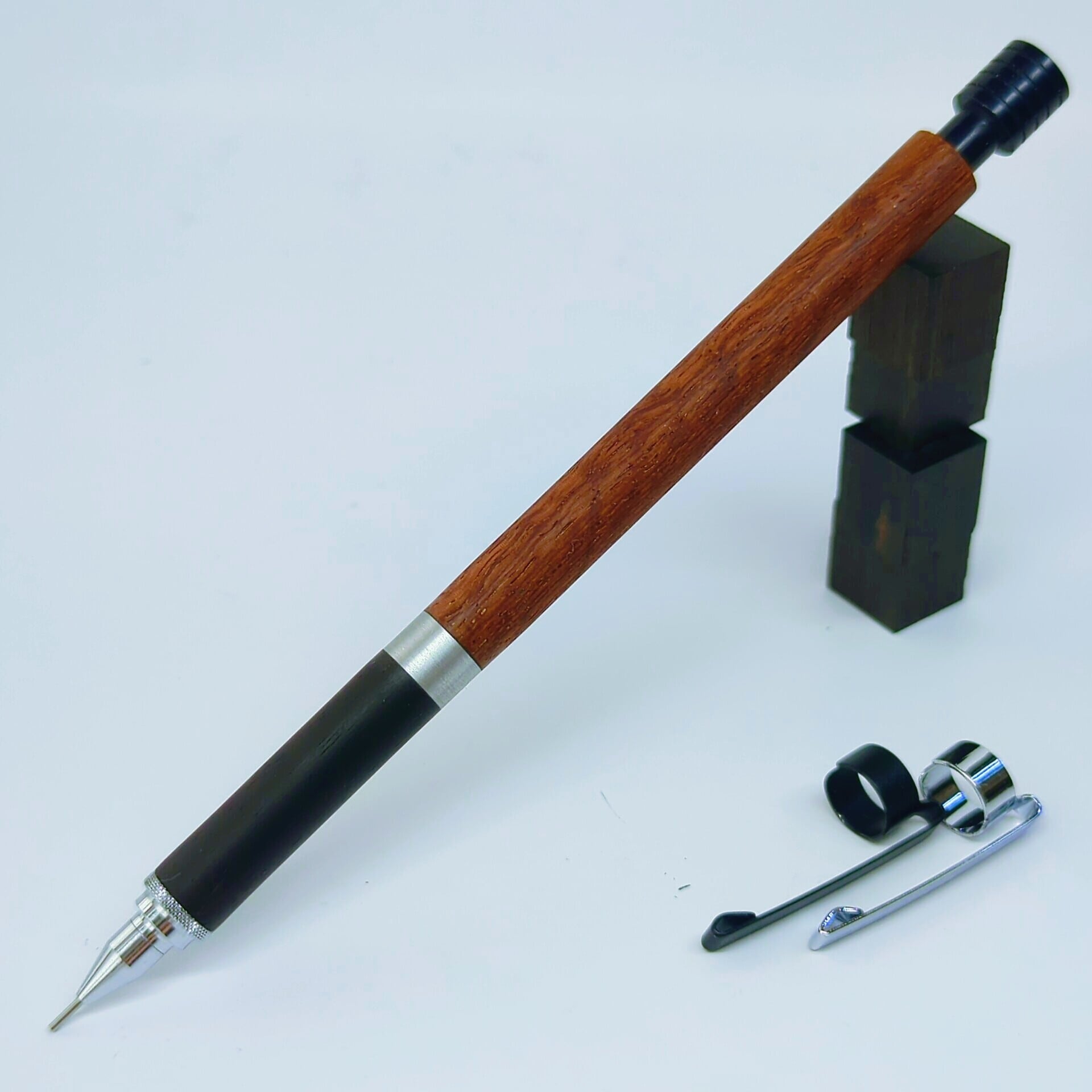 【花梨 縮杢×本黒檀】木軸シャーペン(ステッドラー925シリーズ対応)木軸パーツのみ※本体別売り