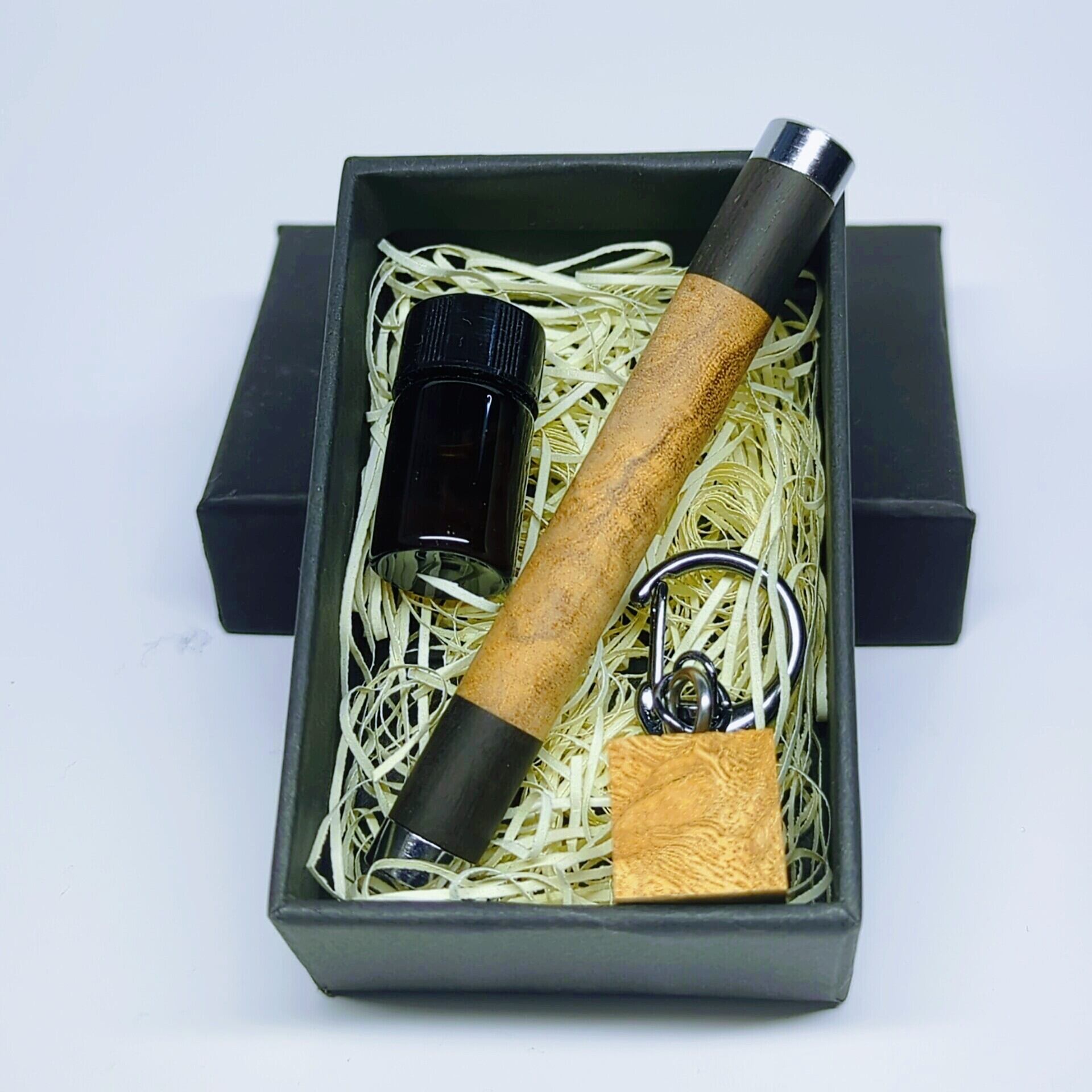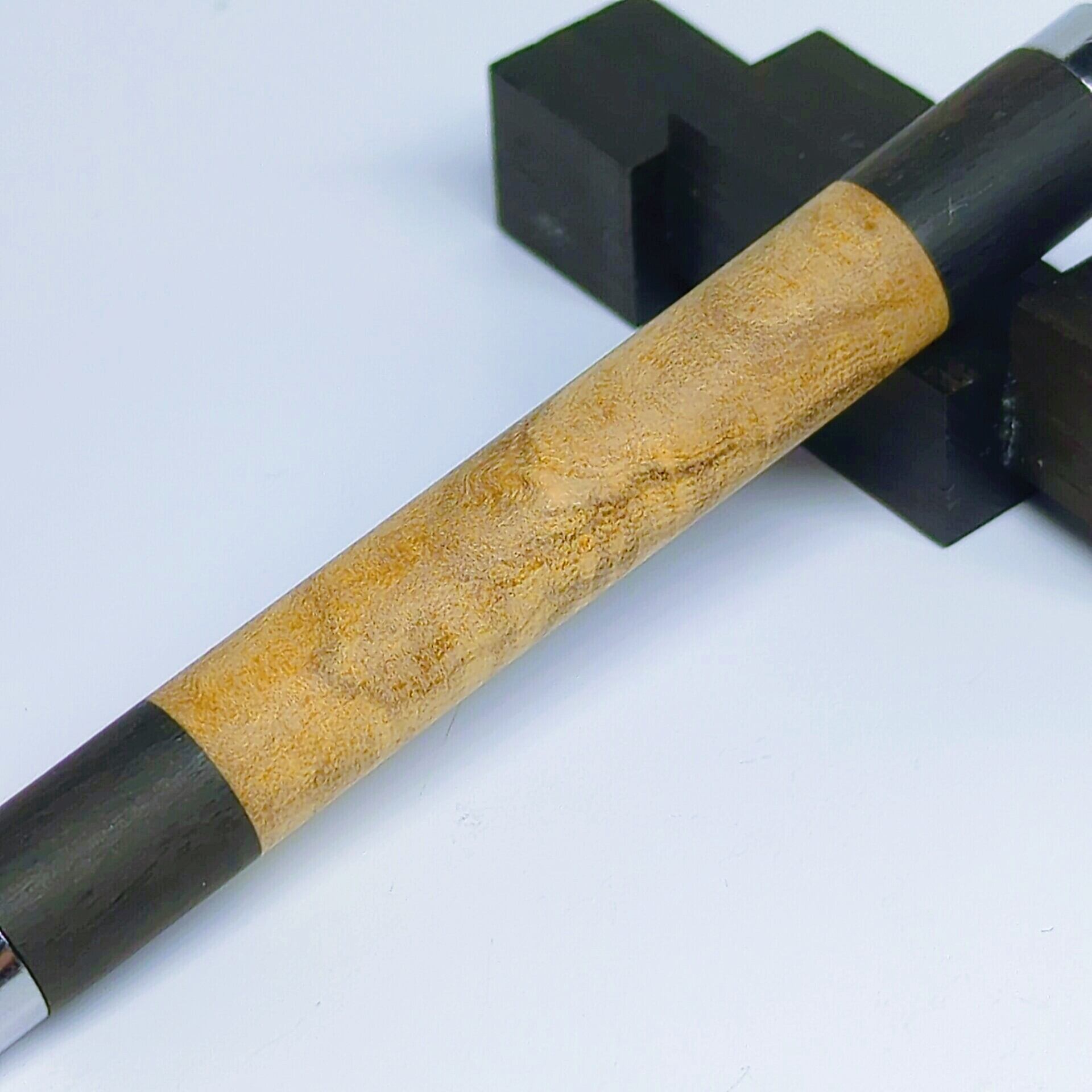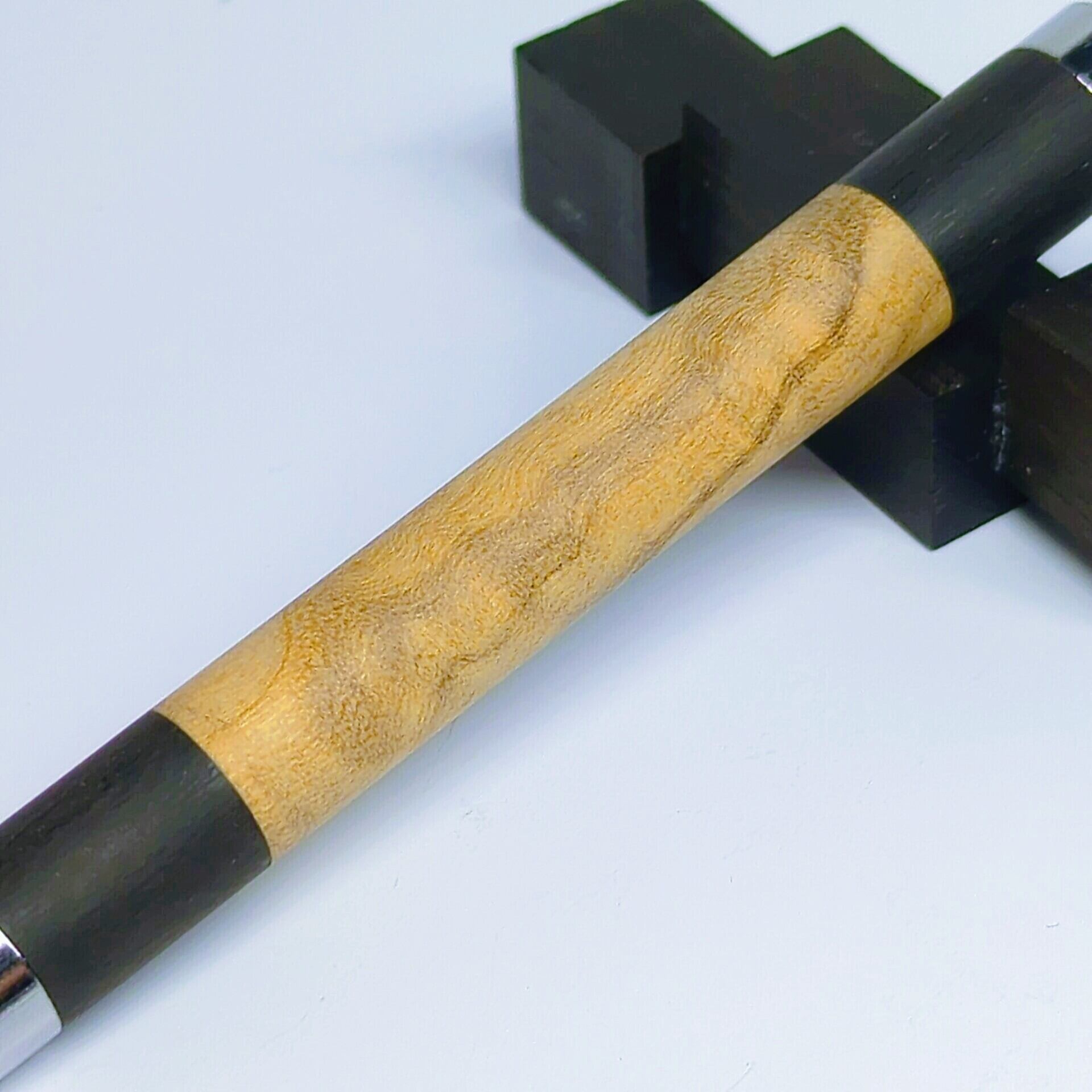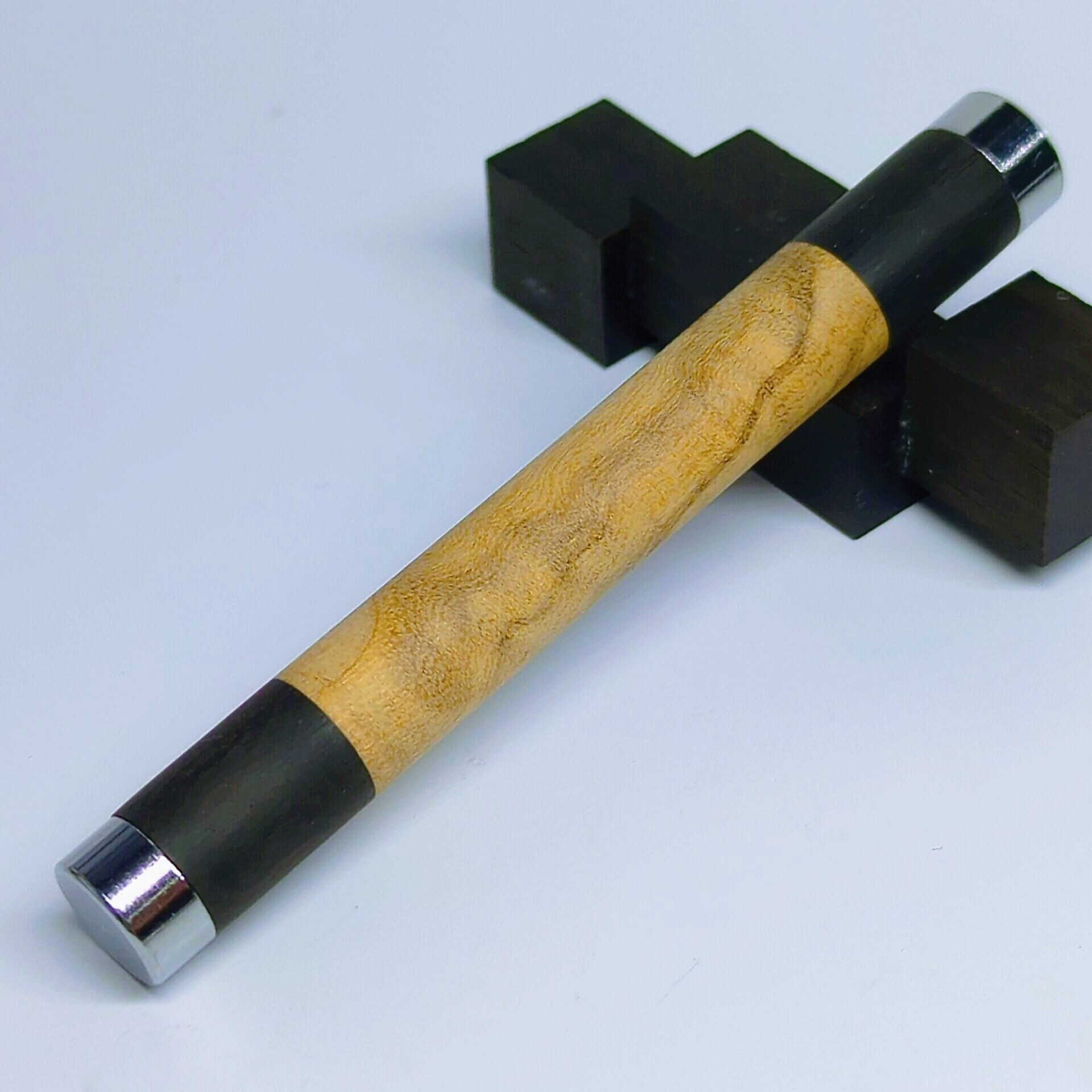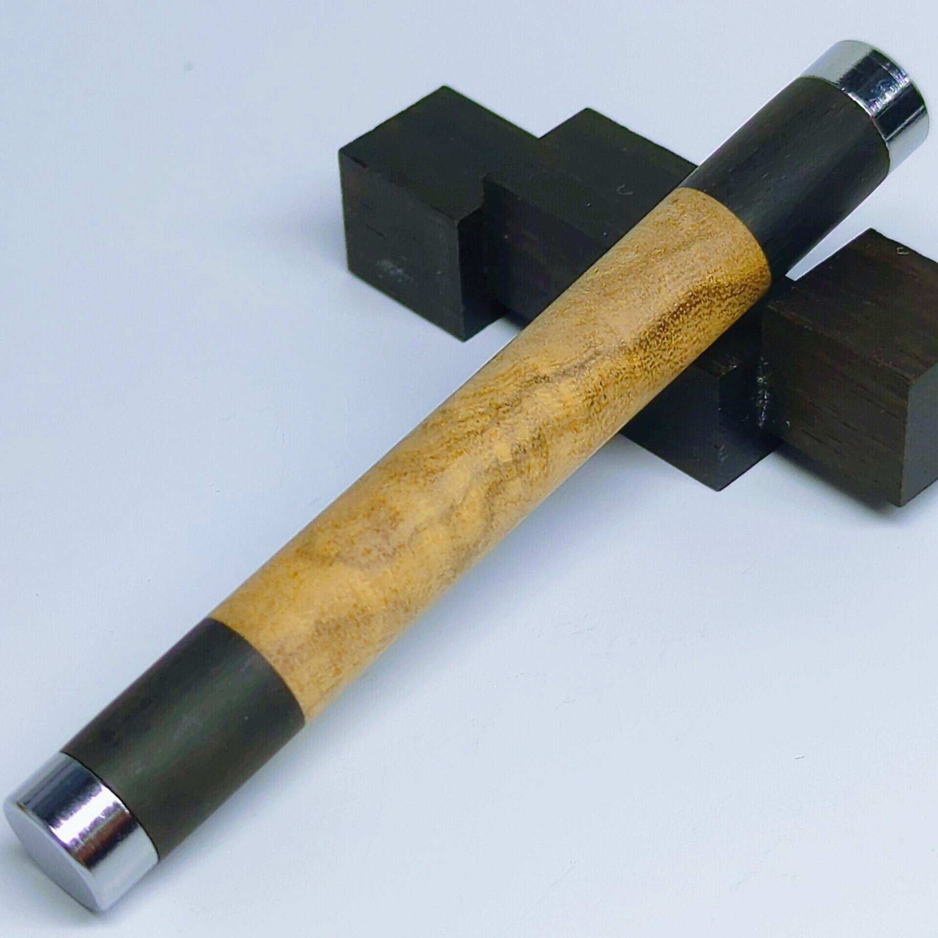 小さなアイテムながら中心には金属パイプを通し、両サイドには黒檀を配した二層構造。
