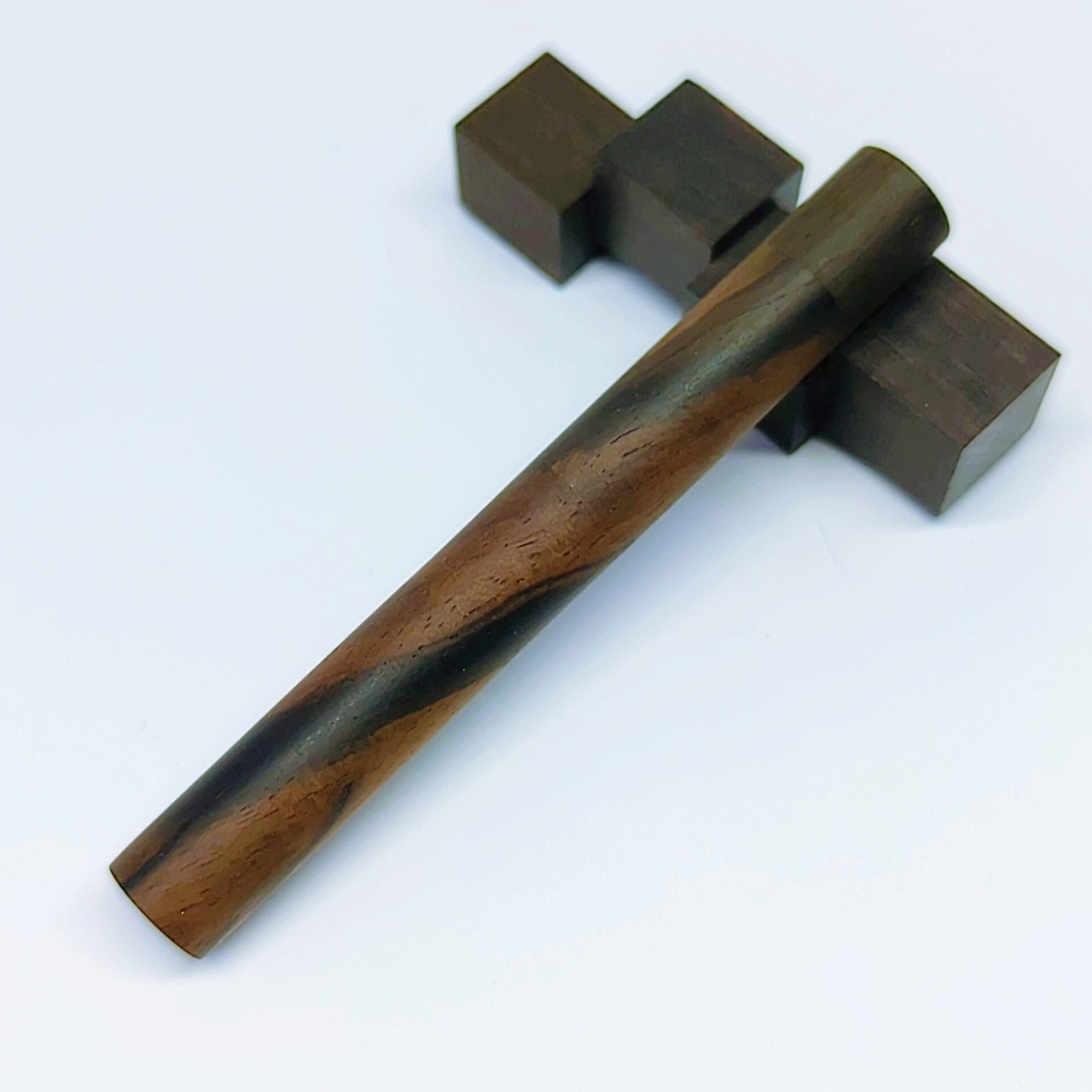金属に頼らず、黒檀同士が自然に寄り添いながら密着することで、緩みにくく、滑らかな収まりを生み出しています。